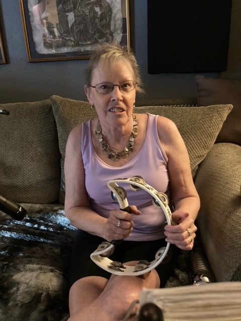 Cassie Funk, tamborinist, vocalist, and lead electric triangle for Wabuska Yachting Club, appearing on the Worst Little Podcast, 07/12/21