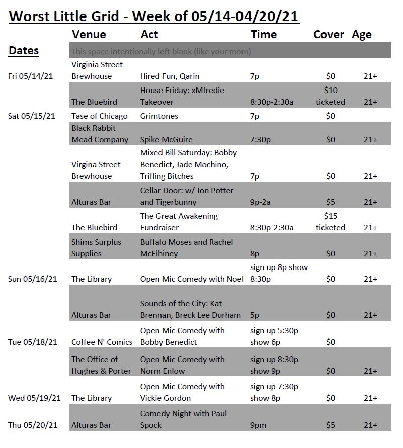 Fri 05/14/21 Virginia Street Brewhouse Hired Fun, Qarin 7p $0 21+