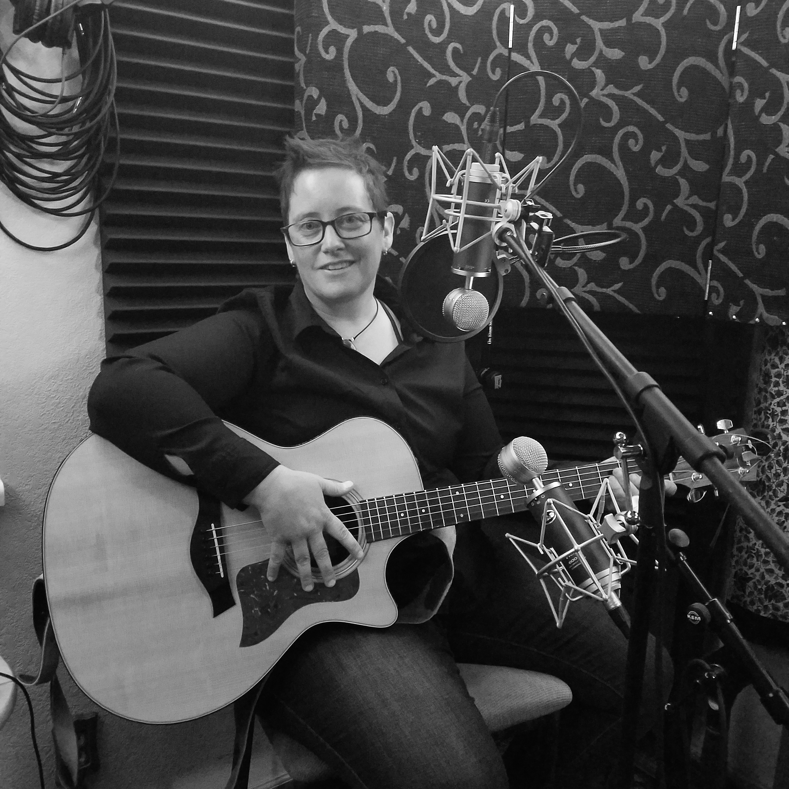 Reno singer-songwriter Jonie Blinman at Dogwater Studios recording for the Worst Little Podcast.