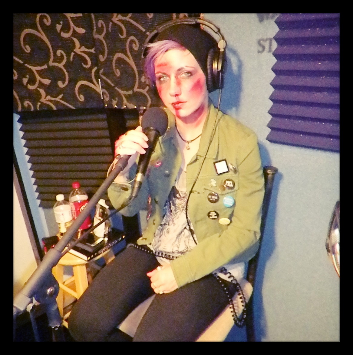 Sammi Ferox of Reno metal band Murderock recording for the Worst Little Podcast at Dogwater Studios.