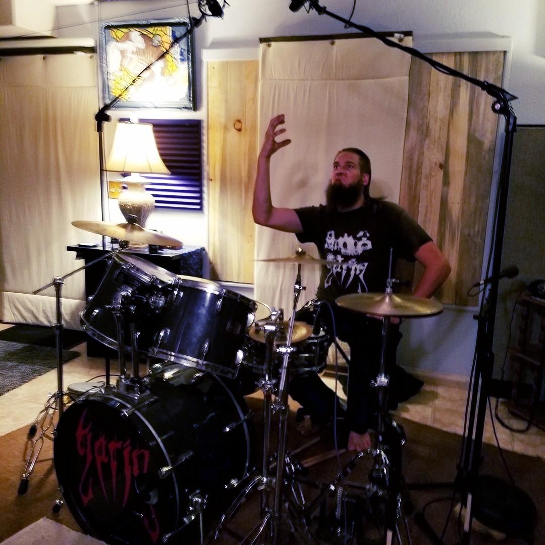 Theodore Poundcake of Reno metal band Qarin recording for the Worst Little podcast at Dogwater Studios.