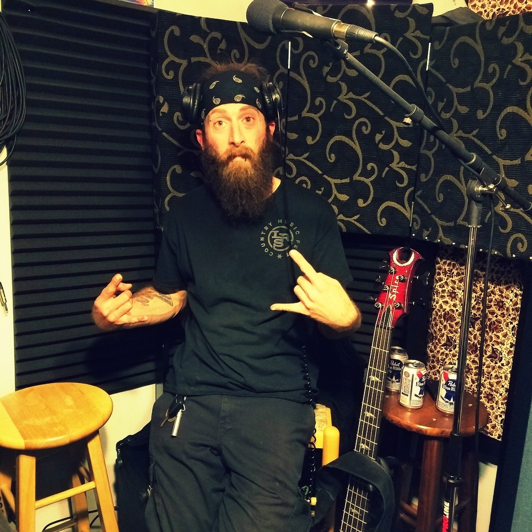 Yo-yo, of Reno metal band Qarin recording for the Worst Little podcast at Dogwater Studios.