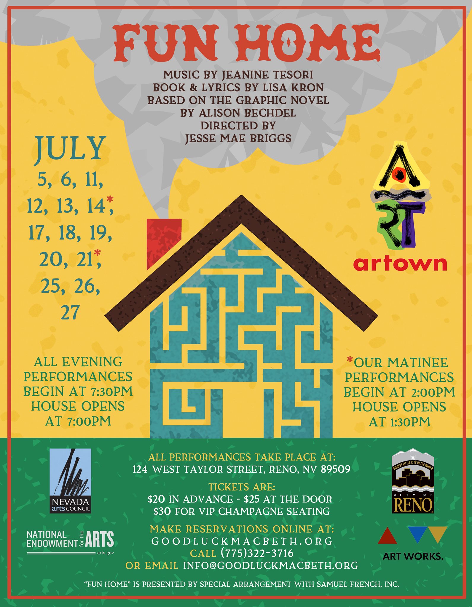 Show poster for Fun Home, running July 5-27 at Good Luck MacBeth. details ant tickets available at www.goodluckmacbeth.org