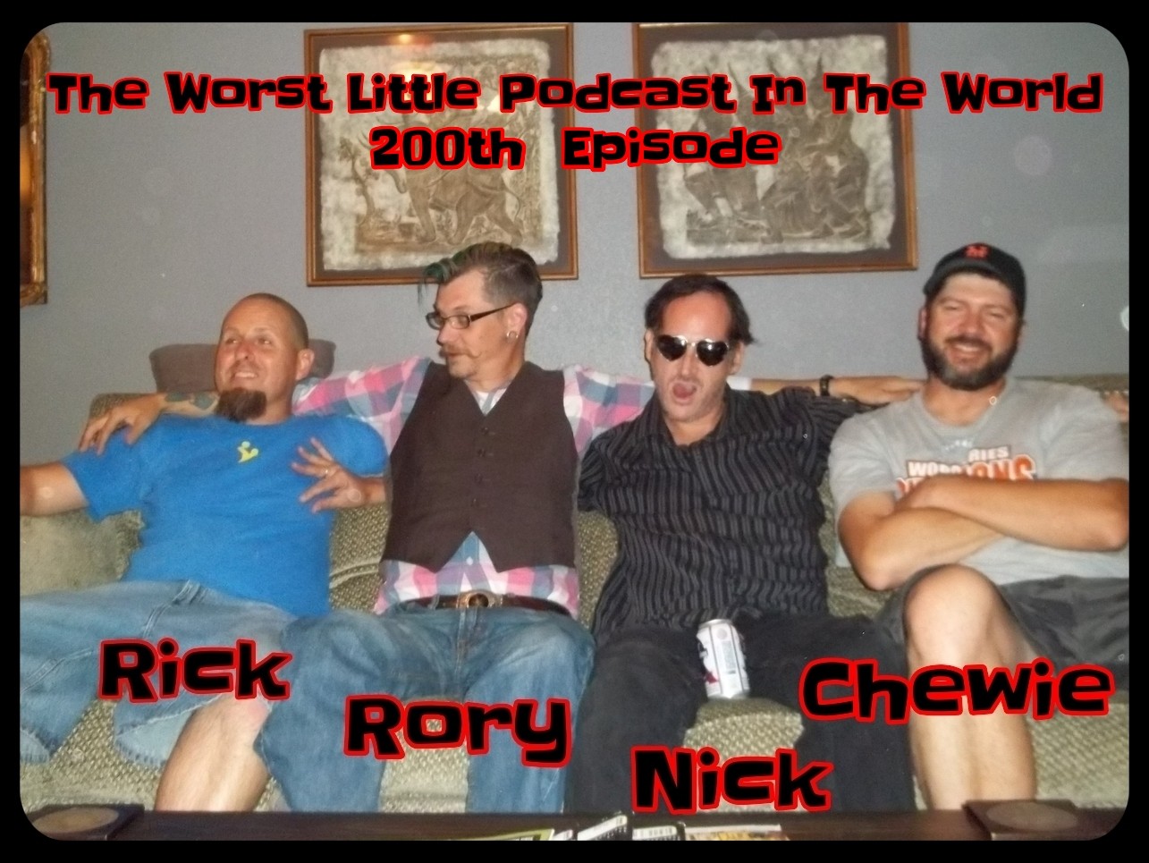 The Worst Little Podcast in the World – Episode 200 – Season 5 Episode 26 – 2015 09 22 – with your hosts, Rick “Dogwater Dick” Spagnola, “Thee” Reverend Rory Dowd, Nick Ramirez and Josh “Chewie” Martin